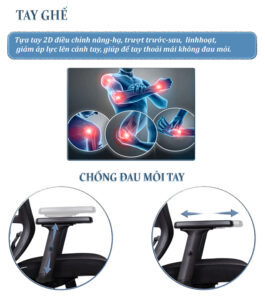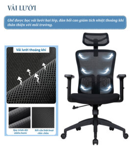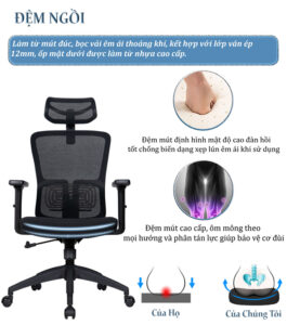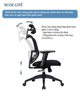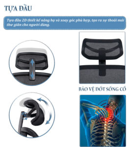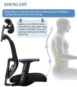 – Phần tựa lưng được thiết kế chuẩn công thái học phù hợp với khuôn lưng, chống vẹo cột sống, có bộ phận tì đỡ cột sống và khả năng điều chỉnh cao thấp theo sở thích của người sử dụng vô cùng tiện lợi