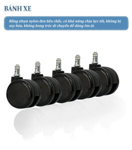 – Sử dụng loại bánh xe bọc PU mềm nhằm mục đích di chuyển êm ái và không bị gằn. Bánh xe xoay tròn và tự động chuyển đa hướng theo chiều đẩy của người sử dụng