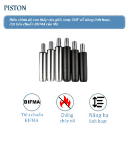 – Là thành phần dễ bị hỏng hóc nhất của ghế. Nó chịu tải trọng của người sử dụng, và có chức năng xoay. Do vậy, ben thủy lực loại tốt thường được cấu thành giá sản phẩm cao hơn.